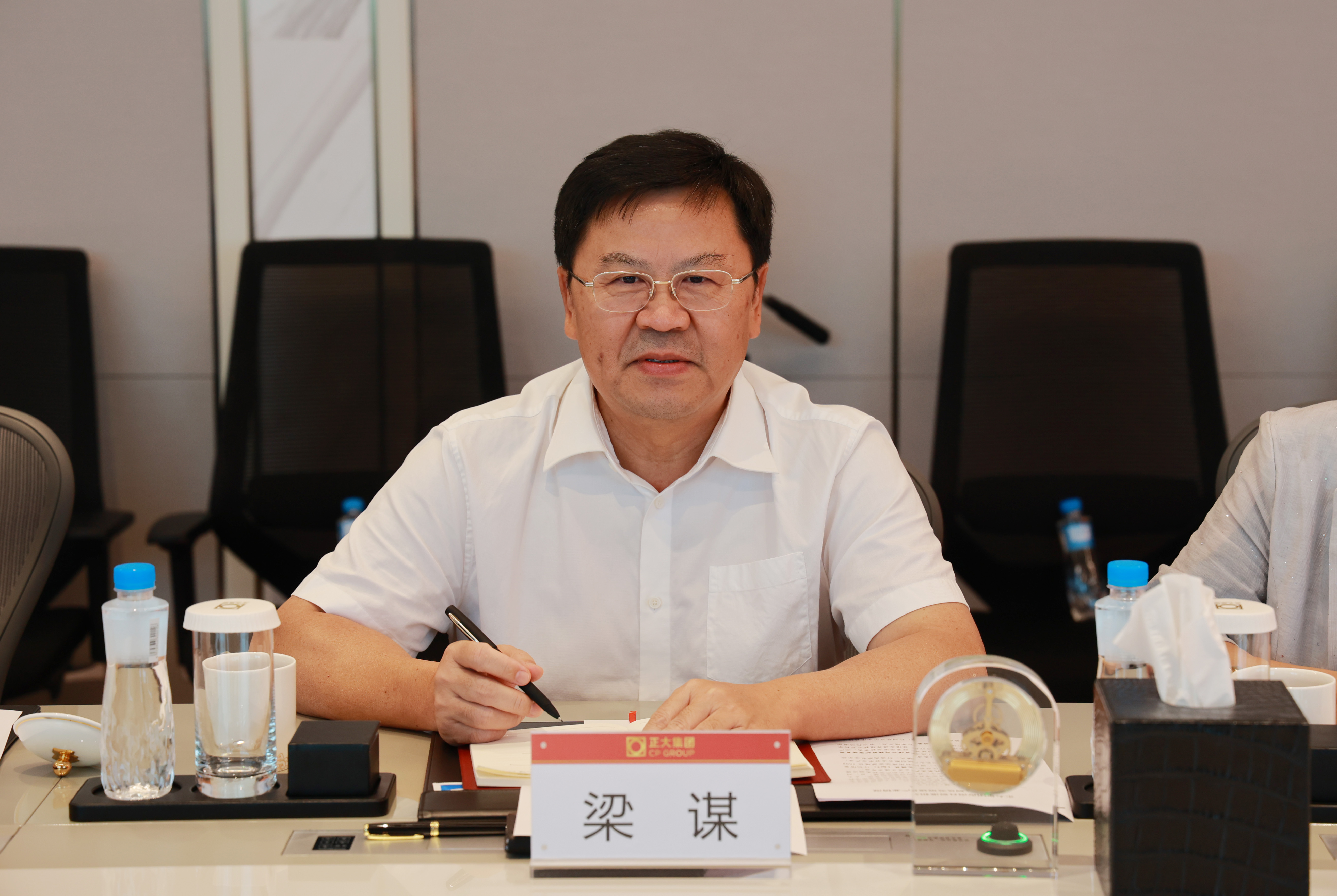 6月16日,中國僑聯副主席、海南省僑聯主席梁謀一行蒞臨正大集團座談交流。正大集團資深副董事長謝毅等在位于北京CBD核心區的正大集團中國區總部——正大中心,熱情接待了梁謀主席一行。中國僑商聯合會副會長兼秘書長夏付東蒞臨參加。