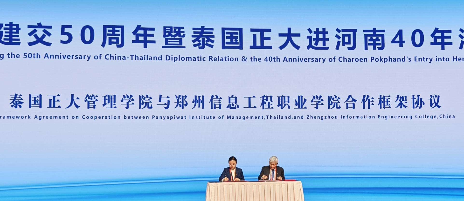 ▲泰國(guó)正大管理學(xué)院分別與河南科技大學(xué)、鄭州信息工程職業(yè)學(xué)院簽署合作框架協(xié)議。