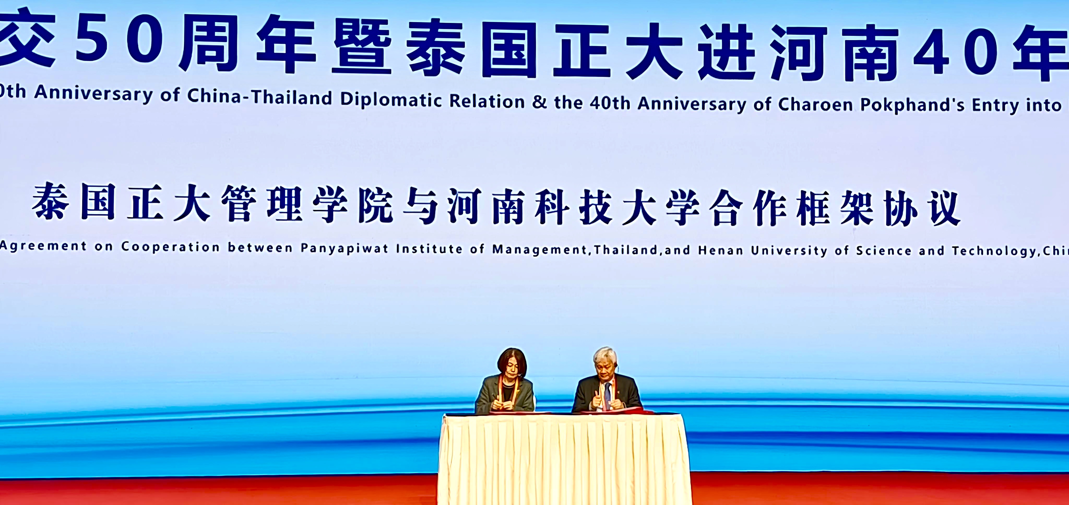活動(dòng)期間,來自洛陽市、開封市、漯河市政府的相關(guān)負(fù)責(zé)人分別作市情推介,分享各自發(fā)展優(yōu)勢(shì),以及與正大集團(tuán)在農(nóng)牧食品、智能制造、城市開發(fā)等領(lǐng)域的合作成果。在簽約環(huán)節(jié),泰國(guó)正大管理學(xué)院分別與河南科技大學(xué)、鄭州信息工程職業(yè)學(xué)院簽署合作框架協(xié)議,進(jìn)一步推動(dòng)中泰在教育與人才培養(yǎng)方面的深度合作。