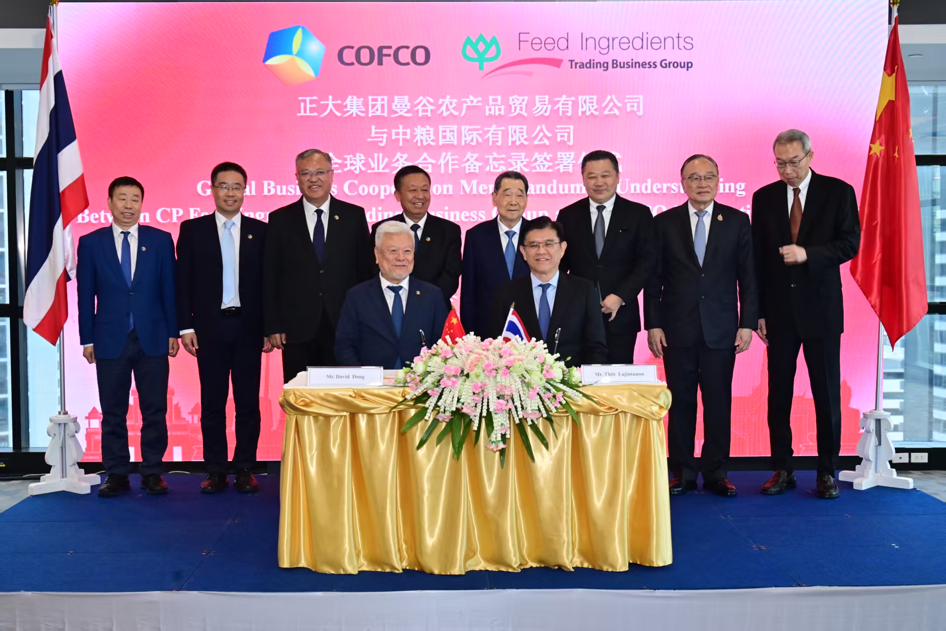 會談期間,正大集團曼谷農(nóng)產(chǎn)品貿(mào)易有限公司與中糧國際有限公司舉行了全球業(yè)務合作備忘錄簽署儀式。